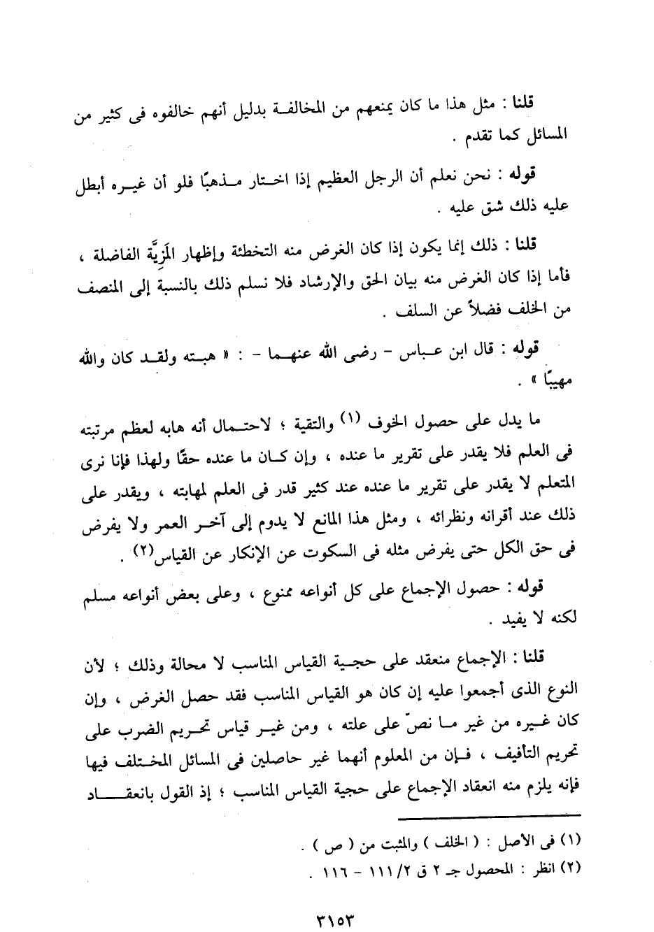 قلنا: ذلك إنما يكون إذا كان الغرض منه التخطئة وإظهار المزية الفاضلة، فأما إذا كان الغرض منه بيان الحق والإرشاد فلا نسلم ذلك بالنسبة إلى المنصف من الخلف فضلًا عن السلف.