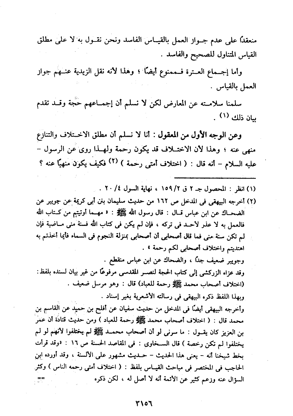 وعن الوجه الأول من المعقول: أنا لا نسلم أن مطلق الاختلاف والتنازع منهي عنه؛ وهذا لأن الاختلاف قد يكون رحمة ولهذا روى عن الرسول- عليه السلام- أنه قال: (اختلاف أمتي رحمة) فكيف يكون منهيًا عنه؟