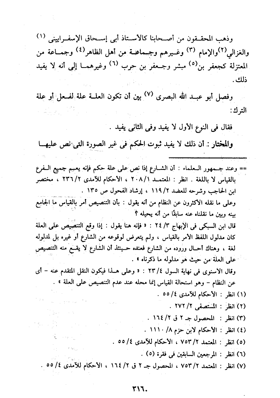 وذهب المحققون من أصحابنا كالأستاذ أبى إسحاق الإسفرايينى والغزالي والإمام وغيرهم وجماعة من أهل الظاهر وجماعة من المعتزلة كجعفر بن مبشر وجعفر بن حرب وغيرهما إلى أنه لا يفيد ذلك.