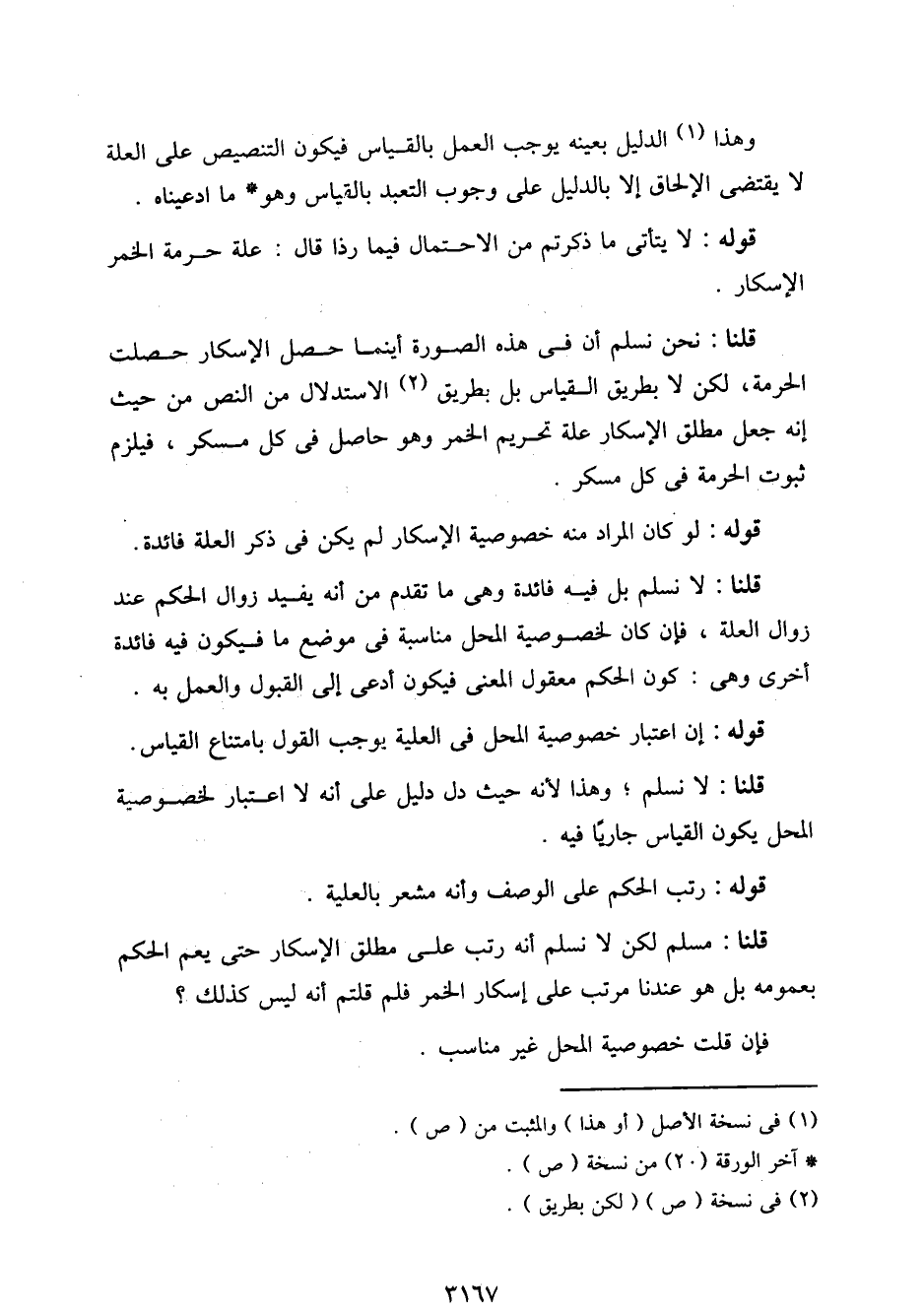 قلنا: نحن نسلم أن في هذه الصورة أينما حصل الإسكار حصلت الحرمة، لكن لا بطريق القياس بل بطريق الاستدلال من النص من حيث إنه جعل مطلق الإسكار علة تحريم الخمر وهو حاصل في كل مسكر، فيلزم ثبوت الحرمة في كل مسكر.