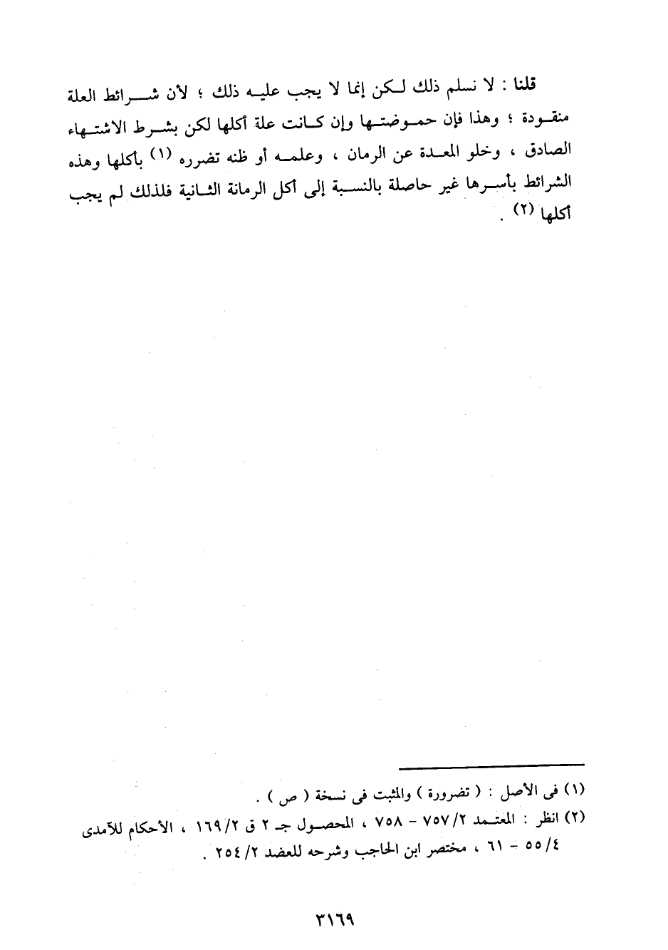 قلنا: لا نسلم ذلك لكن إنما لا يجب عليه ذلك؛ لأن شرائط العلة منقودة؛ وهذا فإن حموضتها وإن كانت علة أكلها لكن بشرط الاشتهاء الصادق، وخلو المعدة عن الرمان، وعلمه أو ظنه تضرره بأكلها وهذه الشرائط بأسرها غير حاصلة بالنسبة إلى أكل الرمانة الثانية فلذلك لم يجب أكلها.
