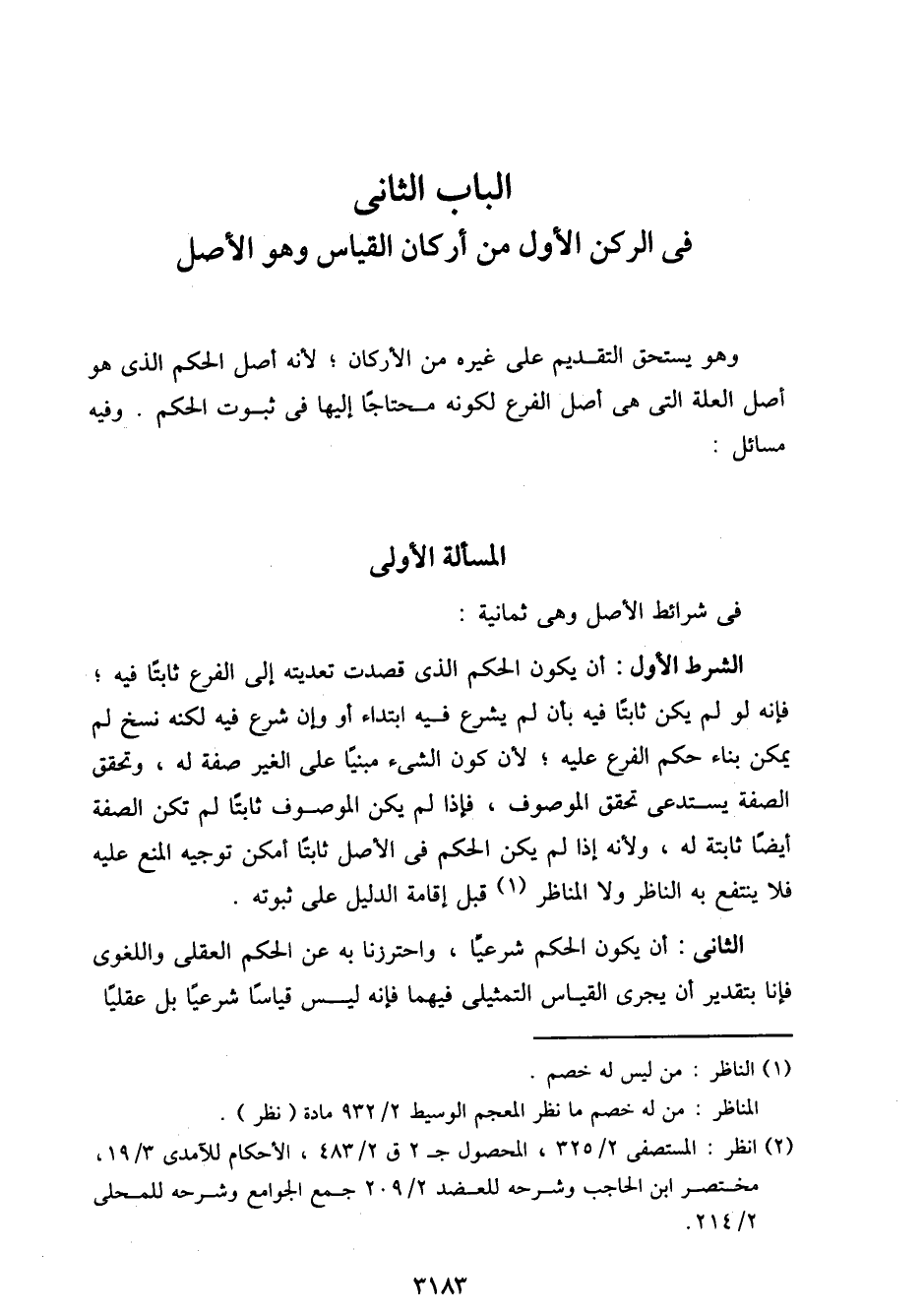 وهو يستحق التقديم على غيره من الأركان؛ لأنه أصل الحكم الذي هو أصل العلة التي هي أصل الفرع لكونه محتاجًا إليها في ثبوت الحكم. وفيه مسائل: