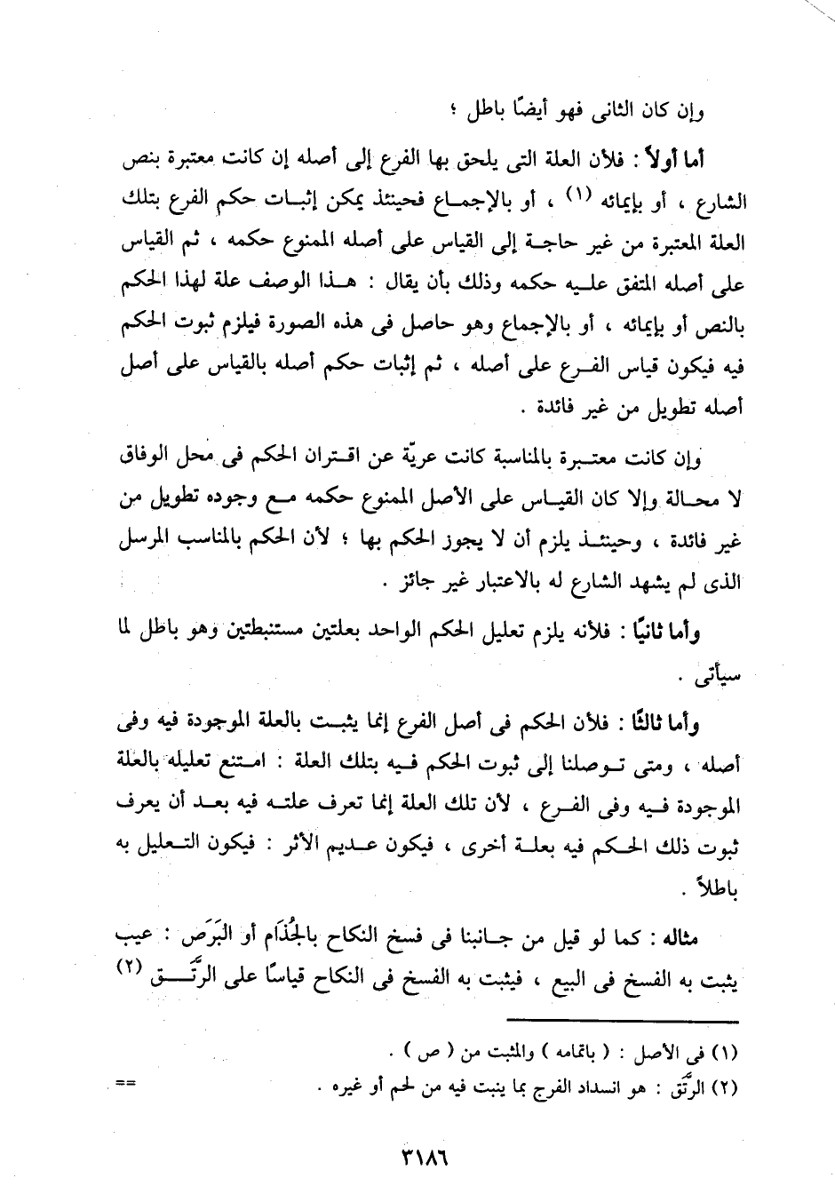 وأما ثالثًا: فلأن الحكم في أصل الفرع إنما يثبت بالعلة الموجودة فيه وفي أصله، ومتى توصلنا إلى ثبوت الحكم فيه بتلك العلة: امتنع تعليله بالعلة الموجودة فيه وفي الفرع، لأن تلك العلة إنما تعرف علته فيه بعد أن يعرف ثبوت ذلك الحكم فيه بعلة أخرى، فيكون عديم الأثر: فيكون التعليل به باطلًا.