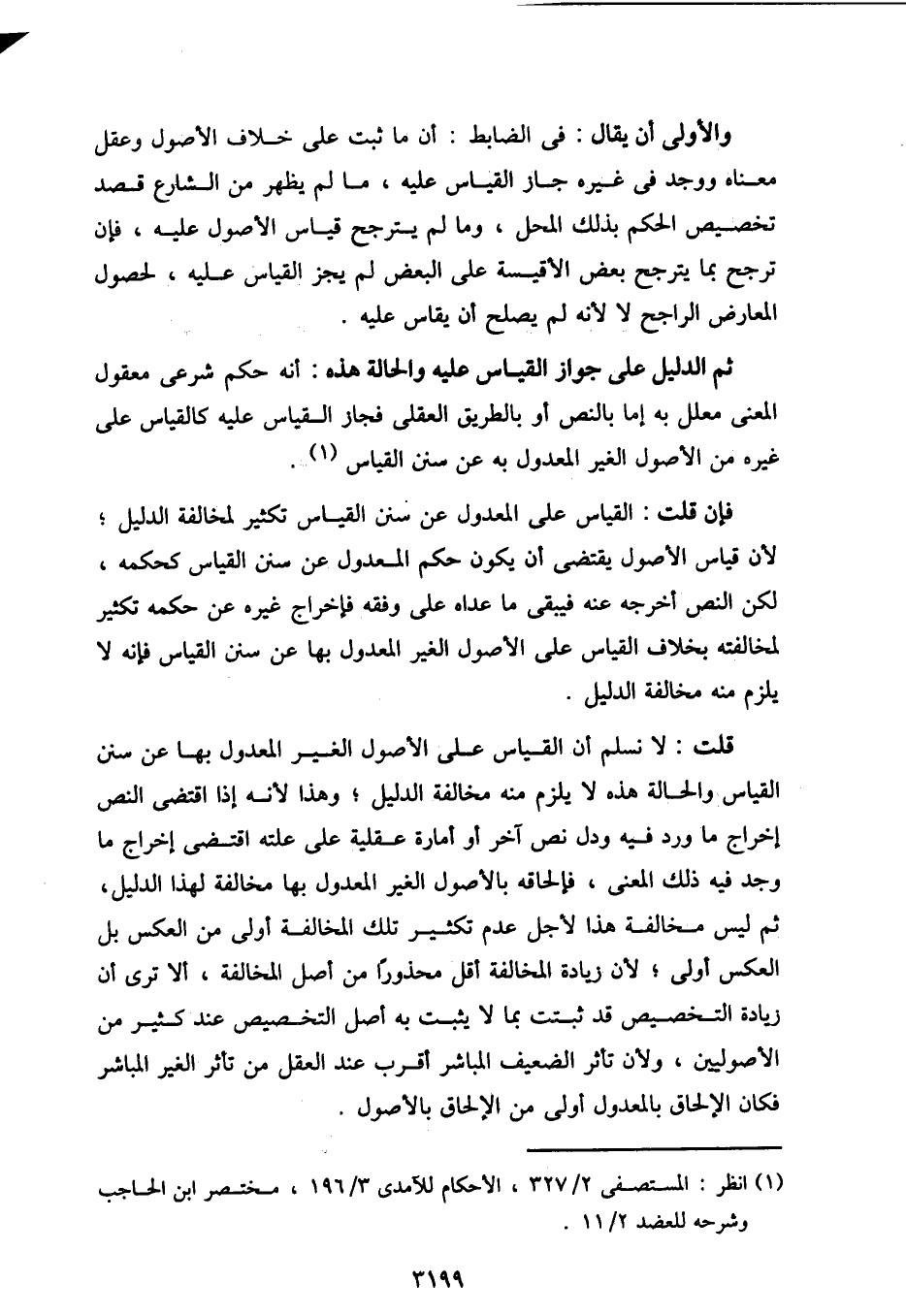 قلت: لا نسلم أن القياس على الأصول الغير المعدول بها عن سنن القياس والحالة هذه لا يلزم منه مخالفة الدليل؛ وهذا لأنه إذا اقتضى النص إخراج ما ورد فيه ودل نص آخر أو أمارة عقلية على علته اقتضى إخراج ما وجد فيه ذلك المعنى، فإلحاقه بالأصول الغير المعدول بها مخالفة لهذا الدليل، ثم ليس مخالفة لأجل عدم تكثير تلك المخالفة أولى من العكس بل العكس أولى؛ لأن زيادة المخالفة أقل محذورًا من أصل المخالفة، ألا ترى أن زيادة التخصيص قد ثبتت بما لا يثبت به أصل التخصيص عند كثير من الأصوليين، ولأن تأثر الضعيف المباشر أقرب عند العقل من تأثر الغير المباشر فكان الإلحاق بالمعدول أولى من الإلحاق بالأصول.