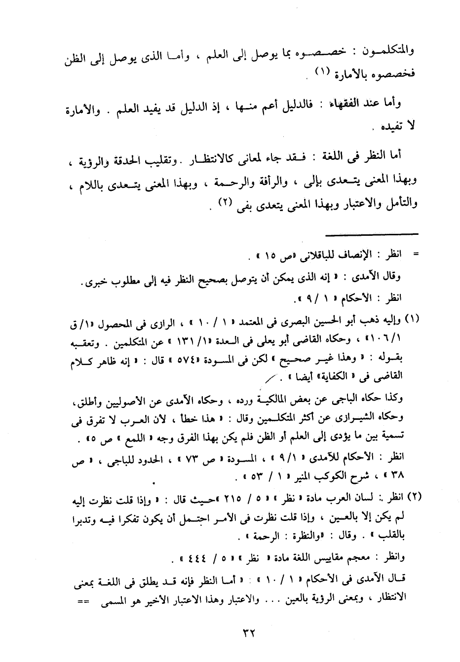 والمتكلمون: خصصوه ما يوصل إلى العلم، وأما الذي يوصل إلى الظن فخصصوه بالأمارة.