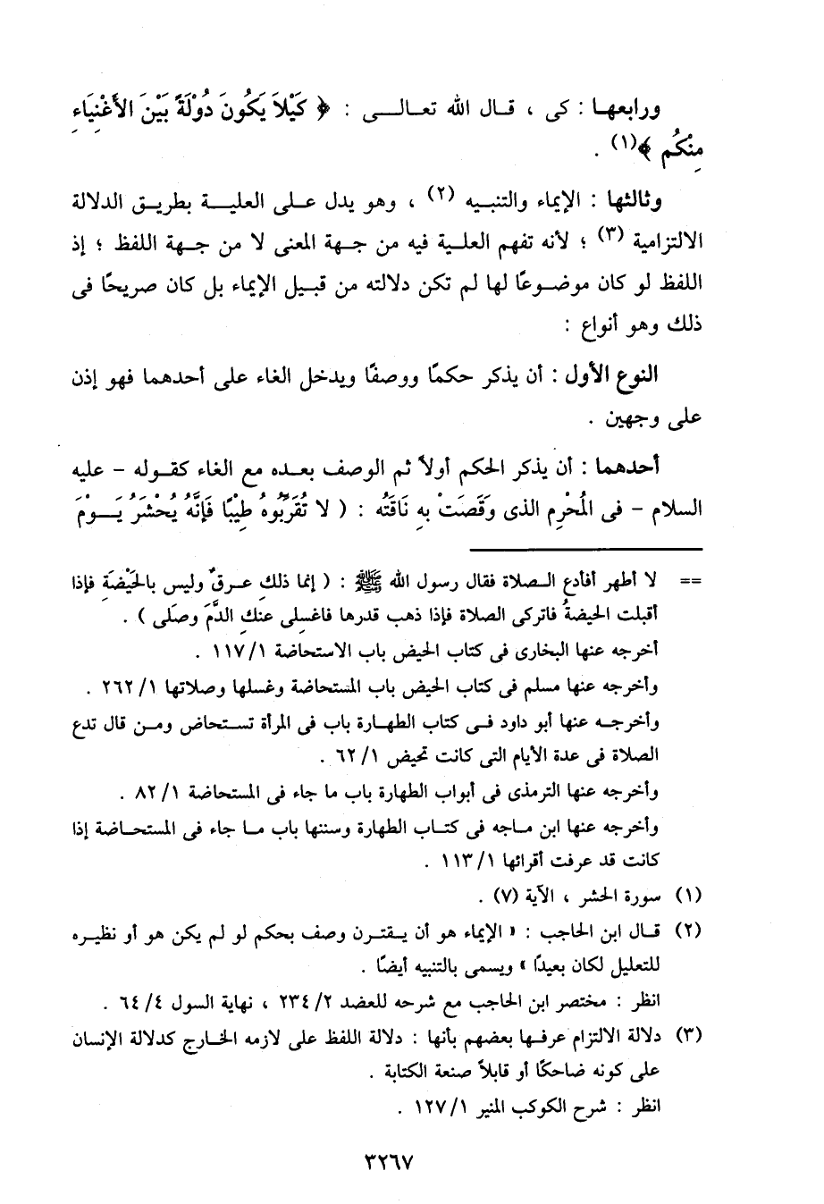 وثالثها: الإيماء والتنبيه، وهو يدل على العلية بطريق الدلالة الالتزامية؛ لأنه تفهم العلية فيه من جهة المعنى لا من جهة اللفظ؛ إذ اللفظ لو كان موضوعًا لها لم تكن دلالته من قبيل الإيماء بل كان صريحًا في ذلك وهو أنواع: