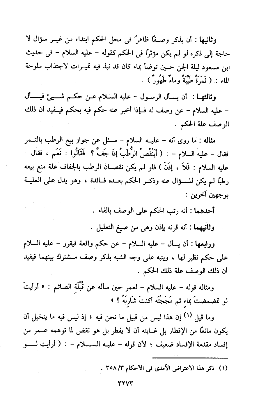 وثالثها: أن يسأل الرسول- عليه السلام عن حكم شيء فيسال- عليه السلام- عن وصف له فإذا أخبر عنه حكم فيه بحكم فيفيد ان ذلك الوصف علة الحكم.