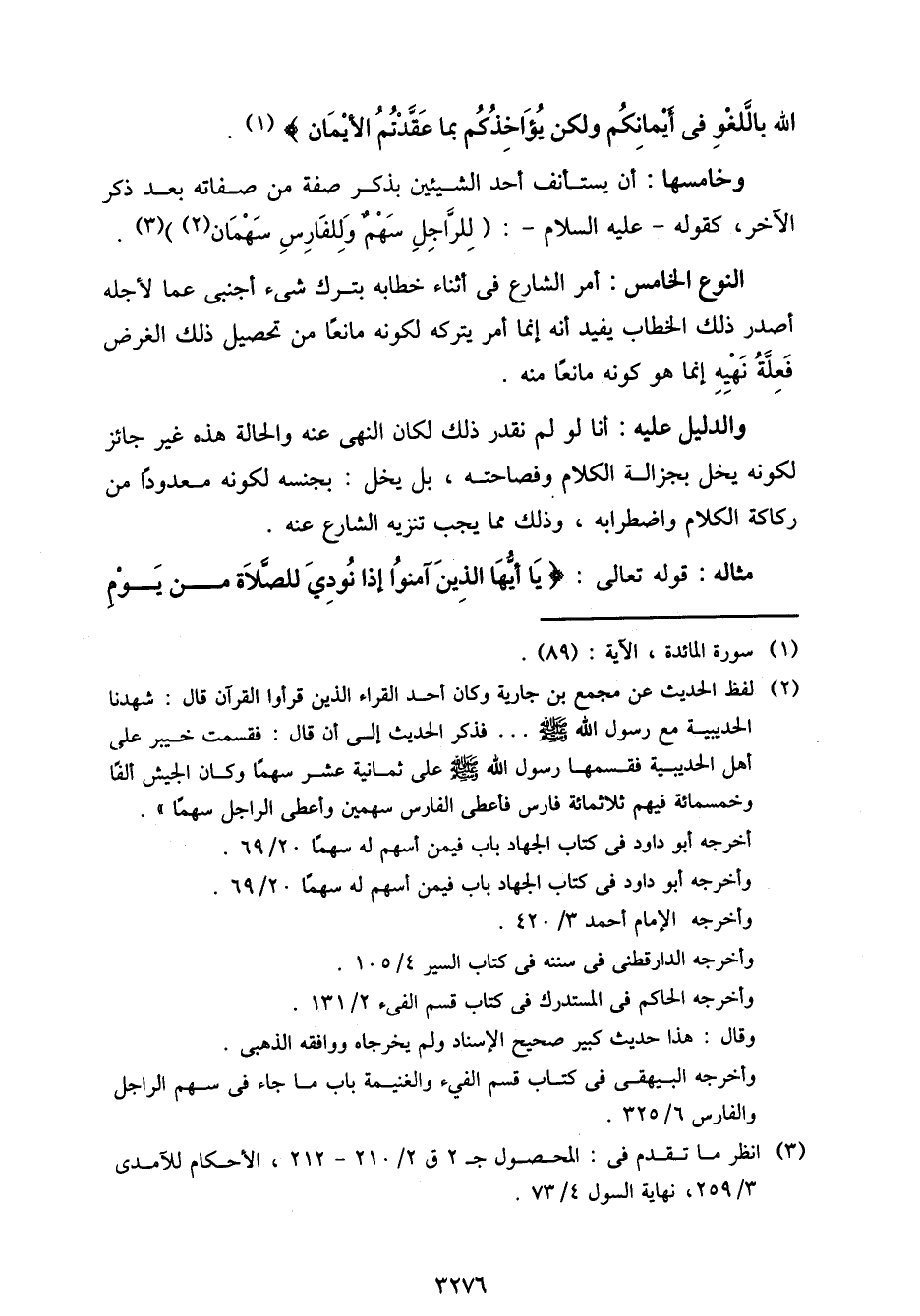 النوع الخامس: أمر الشارع في أثناء خطابه بترك شيء أجنبي عما لأجله أصدر ذلك الخطاب يفيد أنه إنما أمر بتركه لكونه مانعًا من تحصيل ذلك الغرض فعلة نهيه إنما هو كونه مانعًا منه.