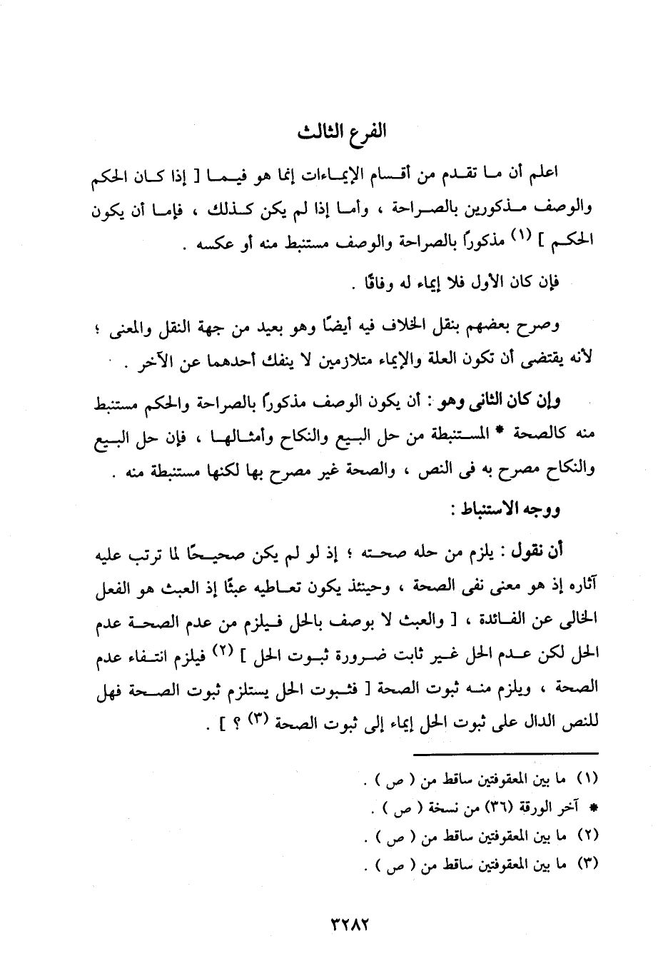 وإن كان الثاني وهو: أن يكون الوصف مذكورًا بالصراحة والحكم مستنبط منه كالصحة المستنبطة من حل البيع والنكاح وأمثالها، فإن حل البيع والنكاح مصرح به في النص، والصحة غير مصرح بها لكنها مستنبطة منه.