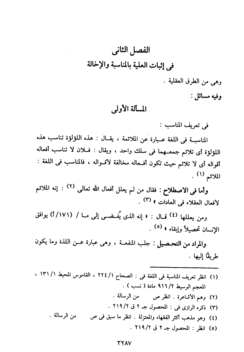 ومن يعللها قال: "إنه الذي يفضى إلى ما/ (171/أ) يوافق الإنسان تحصيلًا وإبقاءً".