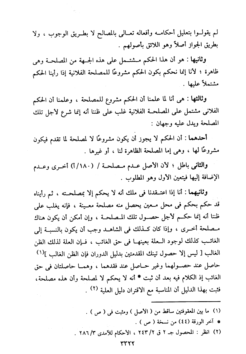 وثانيها: هو أن هذا الحكم مشتمل على هذه الجهة من المصلحة وهي ظاهرة؛ لأنا إنما نحكم بكون الحكم مشروعًا للمصلحة الفلانية إذا رأينا الحكم مشتملًا عليها.
