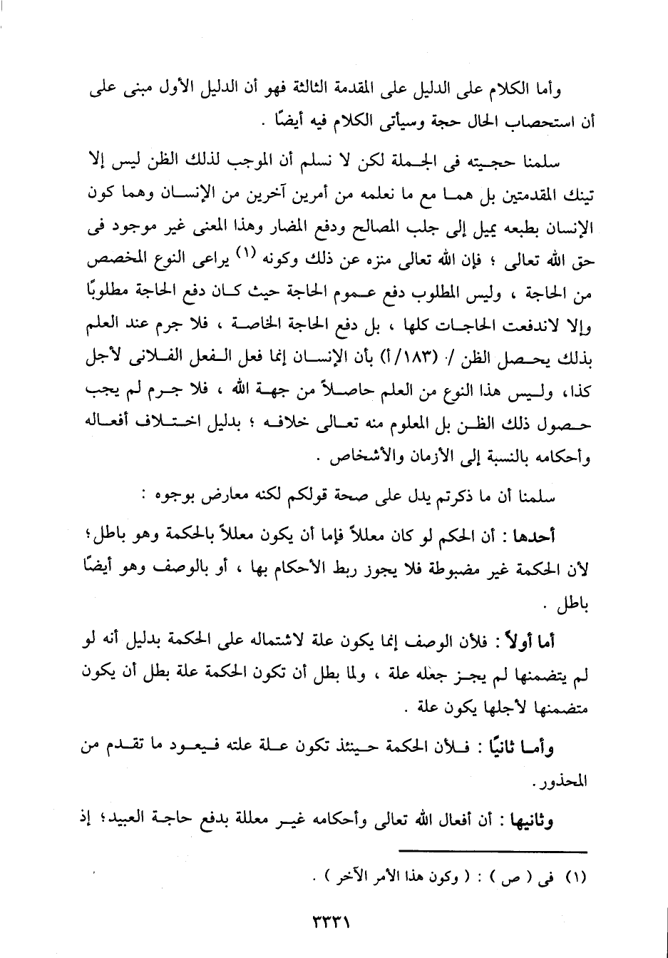 وثانيها: أن أفعال الله تعالى وأحكامه غير معللة بدفع حاجة العبيد؛ إذ