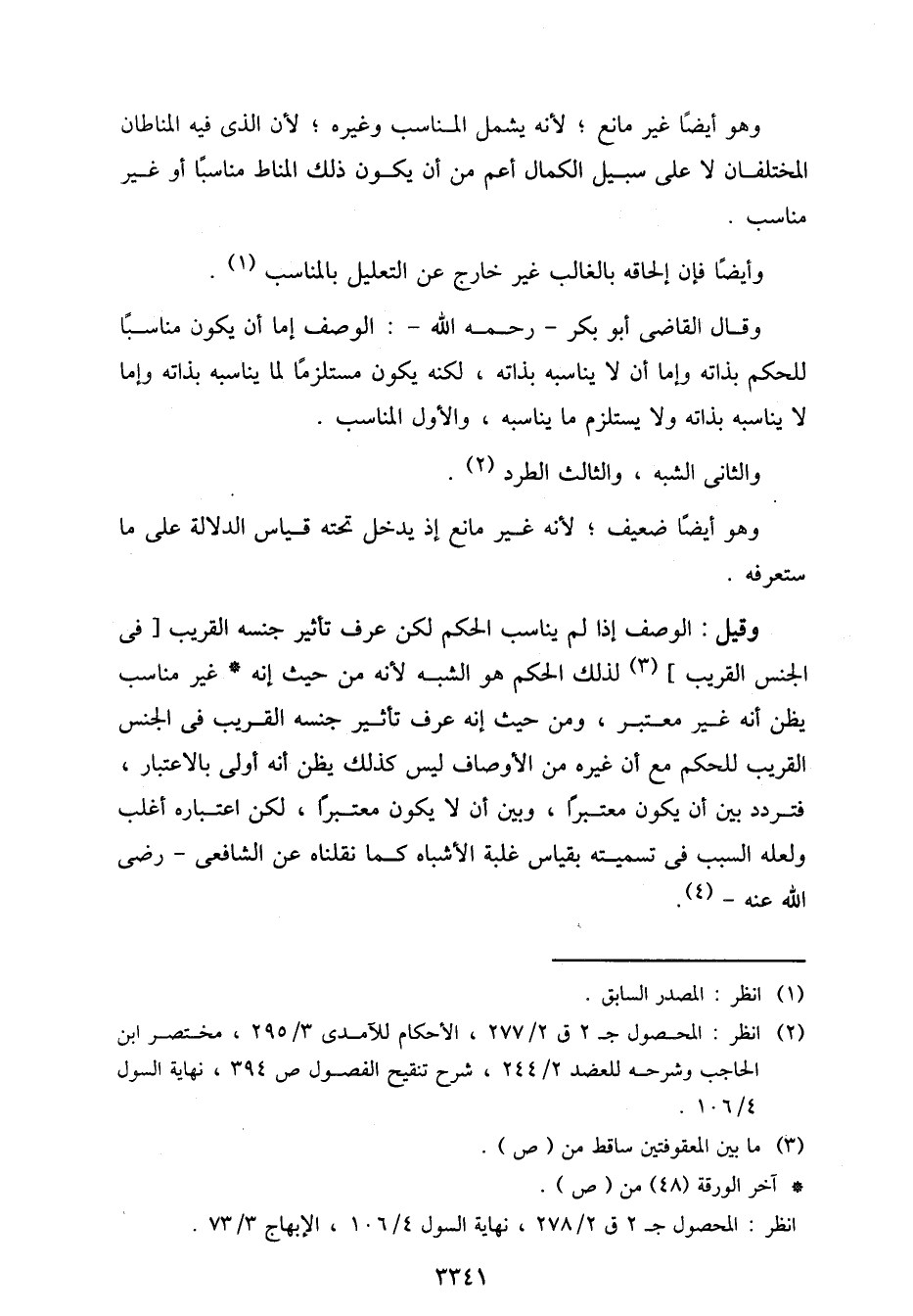 وقيل: الوصف إذا لم يناسب الحكم لكن عرف تأثير جنسه القريب [في الجنس القريب] لذلك الحكم هو الشبه لأنه من حيث إنه غير مناسب يظن أنه غير معتبر، ومن حيث إنه عرف تأثير جنسه القريب في الجنس القريب للحكم مع أن غيره من الأوصاف ليس كذلك يظن أنه أولى بالاعتبار، فتردد بين أن يكون معتبرًا، وبين أن لا يكون معتبرًا، لكن اعتباره أغلب ولعله السبب في تسميته بقياس غلبة الأشباه كما نقلناه عن الشافعي- رضي الله عنه-.