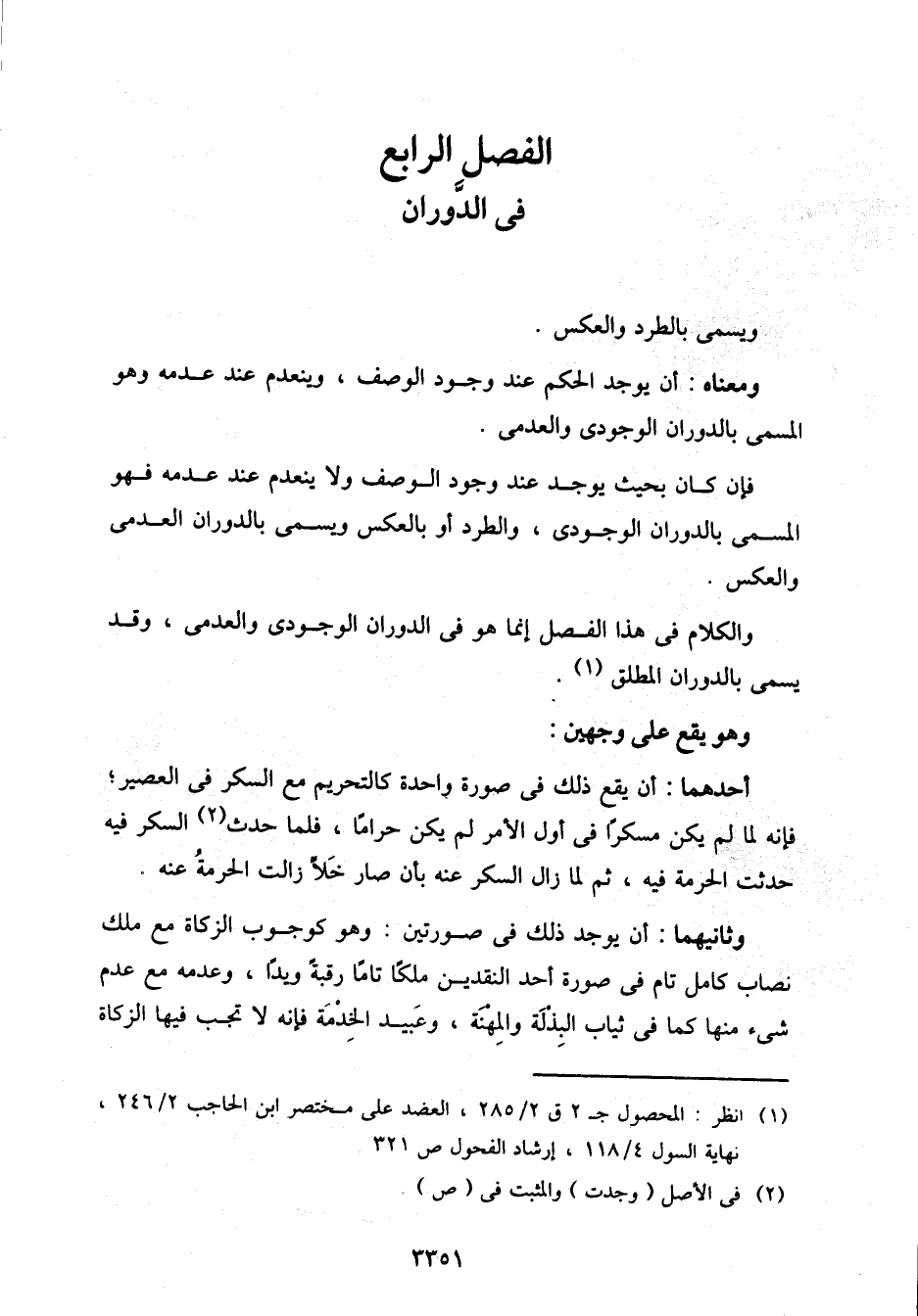 والكلام في هذا الفصل إنما هو في الدوران الوجودي والعدمي، وقد يسمي بالدوران المطلق.