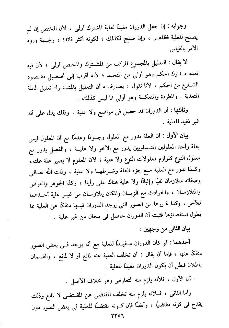 أحدهما: لو كان الدوران مفيدًا للعلية مع أنه يوجد في بعض الصور منفكًا عنها، فإما أن يقال: أن تخلف العلية عنه لمانع أو لا لمانع، والقسمان باطلان فبطل أن يكون الدوران مفيدًا للعلية.