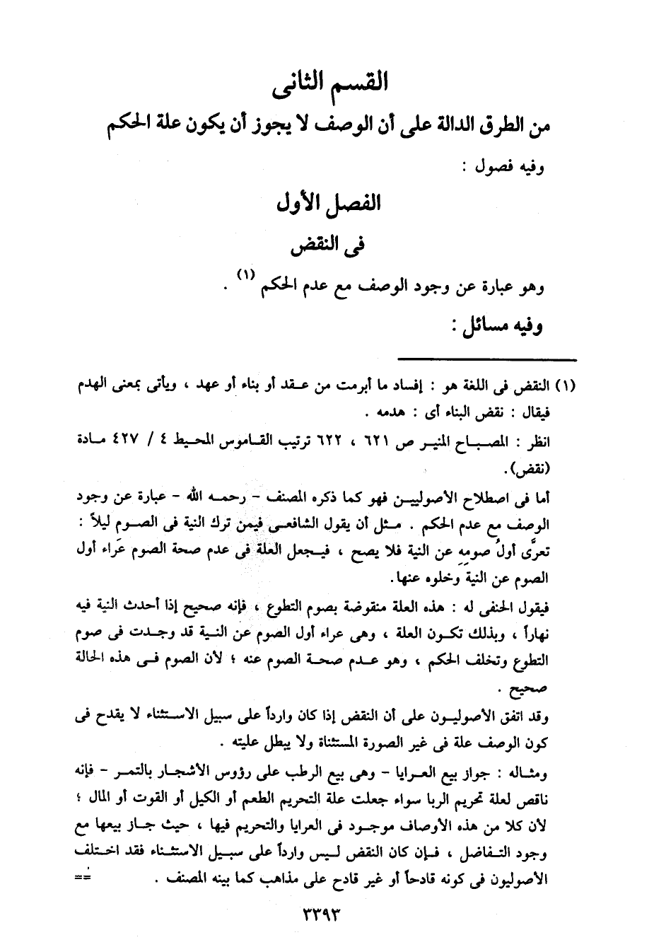 من الطرق الدالة على أن الوصف لا يجوز أن يكون علة الحكم وفيه فصول: