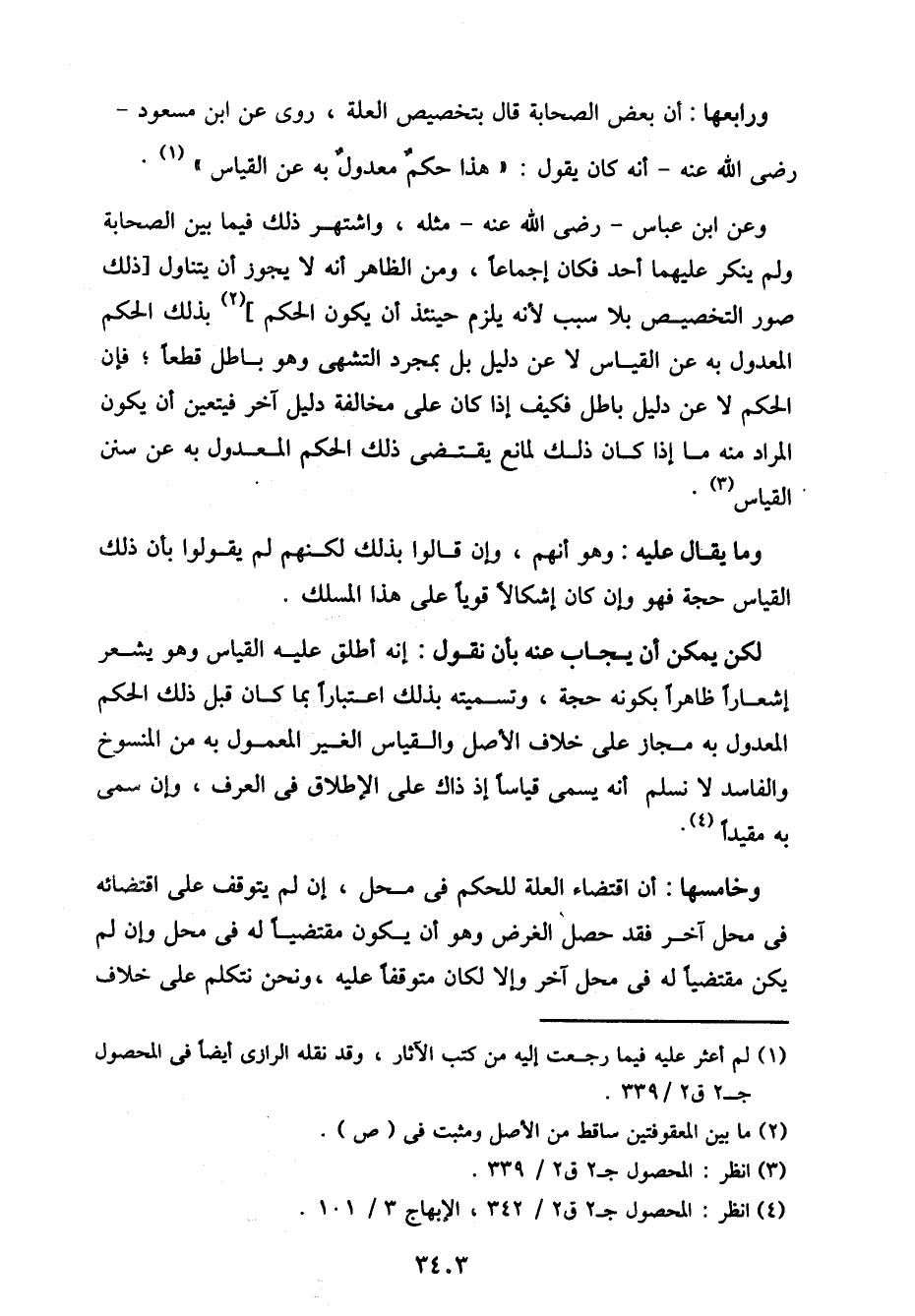 ورابعها: أن بعض الصحابة قال بتخصيص العلة، روى عن ابن مسعود- رضي الله عنه- أنه كان يقول: "هذا حكم معدول به عن القياس".