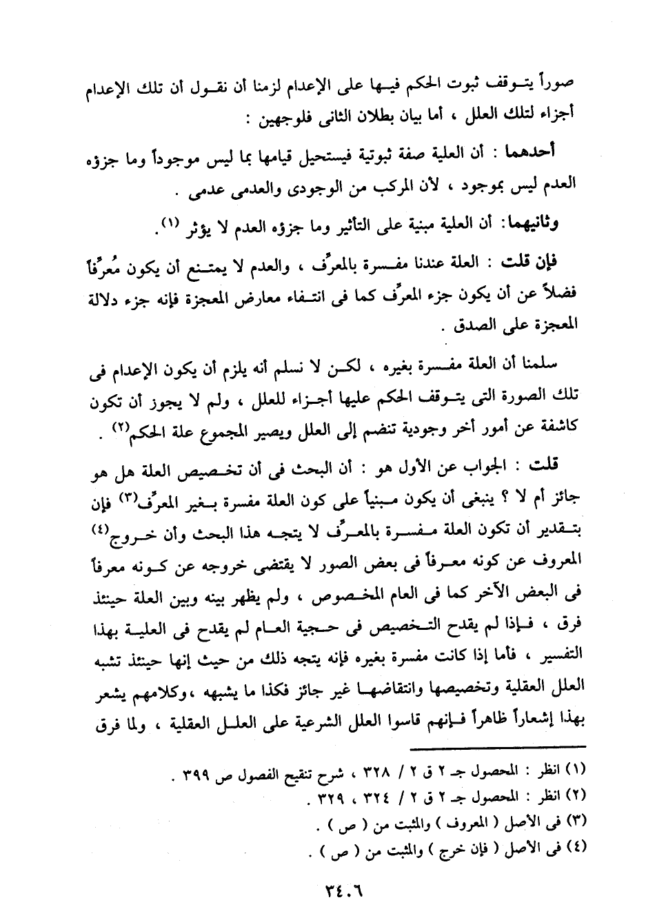صورًا يتوقف ثبوت الحكم فيها على الإعدام لزمنا أن نقول أن تلك الإعدام أجزاء لتلك العلل، أما بيان بطلان الثاني فلوجهين: