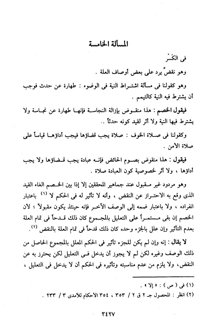 المسألة الخامسة