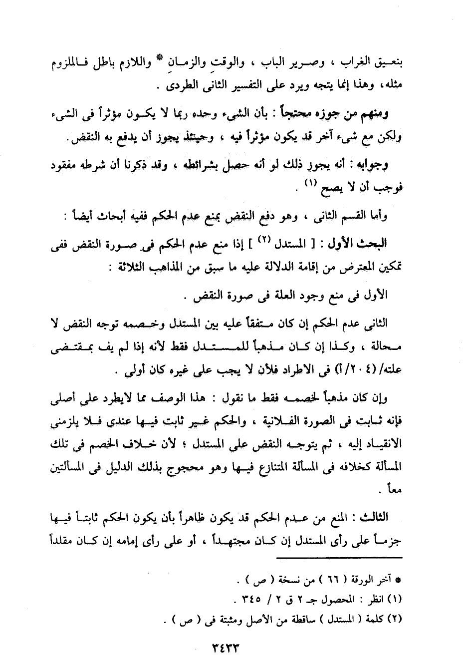 وأما القسم الثاني، وهو دفع النقض بمنع عدم الحكم ففيه أبحاث أيضًا: