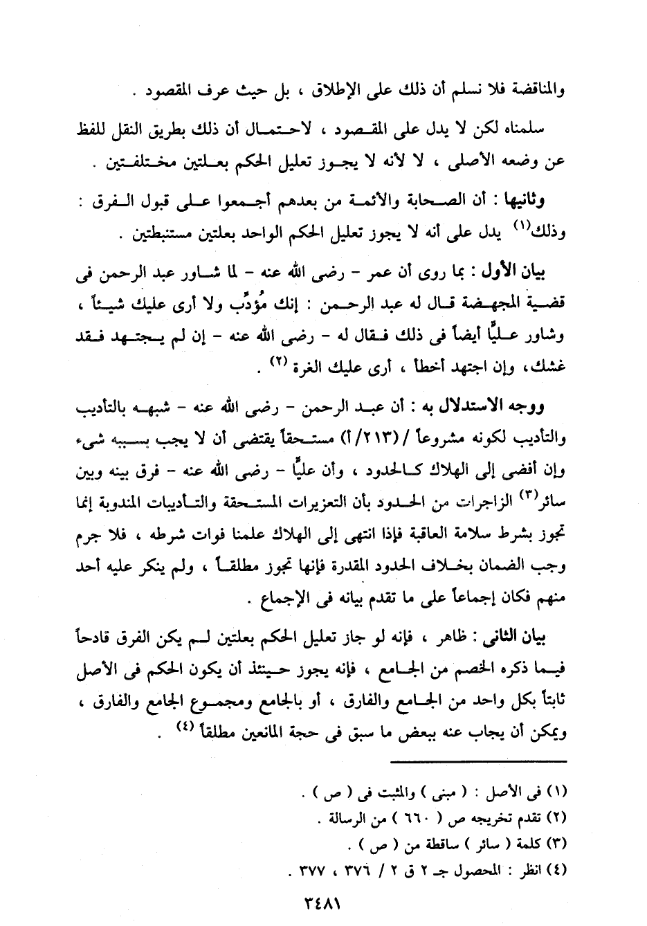 وثانيها: أن الصحابة والأئمة من بعدهم أجمعوا على قبول الفرق: وذلك يدل على أنه لا يجوز تعليل الحكم الواحد بعلتين مستنبطتين.