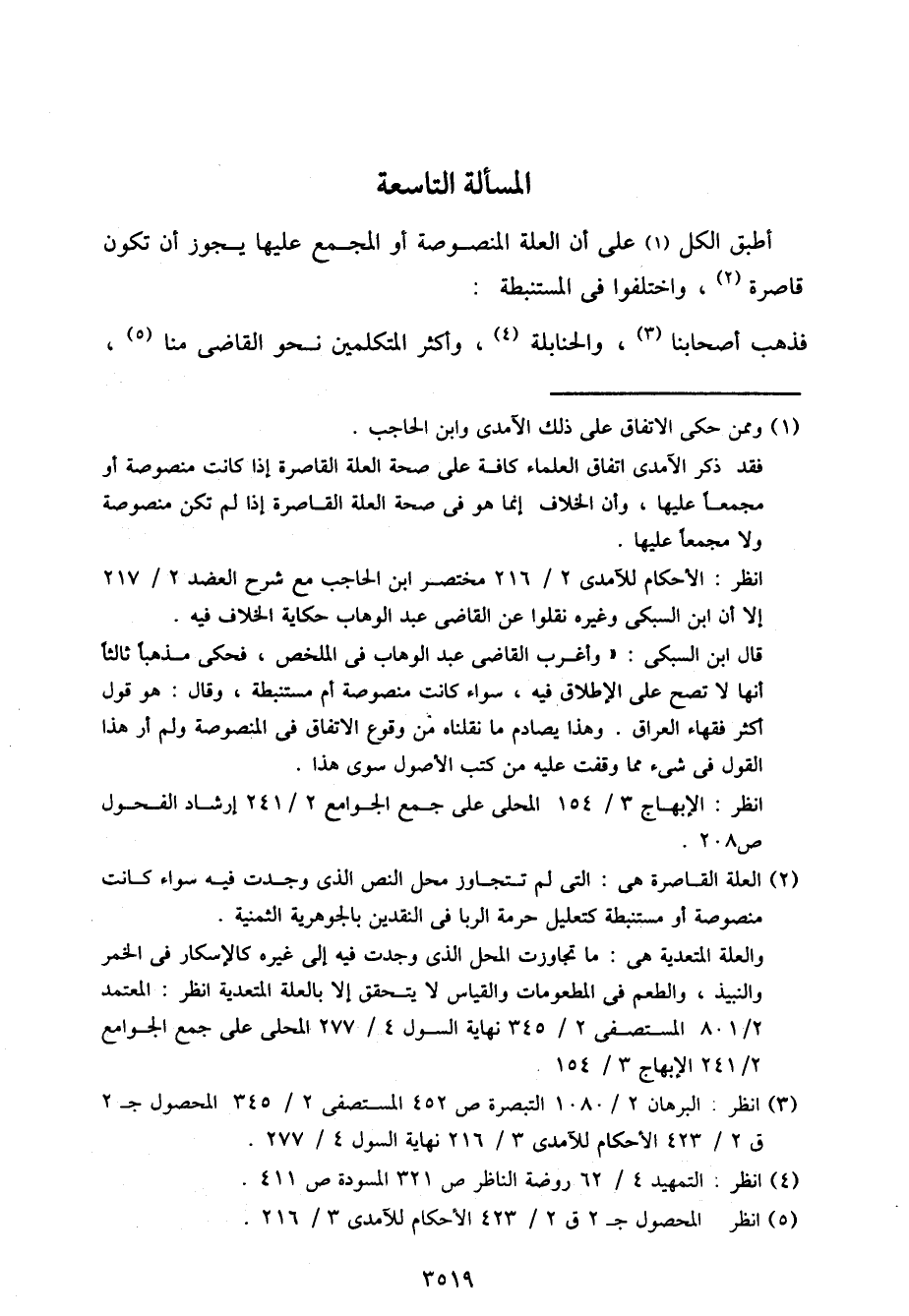 أطبق الكل على أن العلة المنصوصة أو المجمع عليها يجوز أن تكون قاصرة، وأختلفوا في المستنبطة: