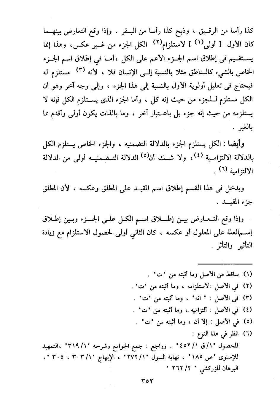وأيضا: الكل يستلزم الجزء بالدلالة التضمنية، والجزء الخاص يستلزم الكل بالدلالة الالتزامية، ولا شك أن الدلالة التضمنية أولى من الدلالة الالتزامية.