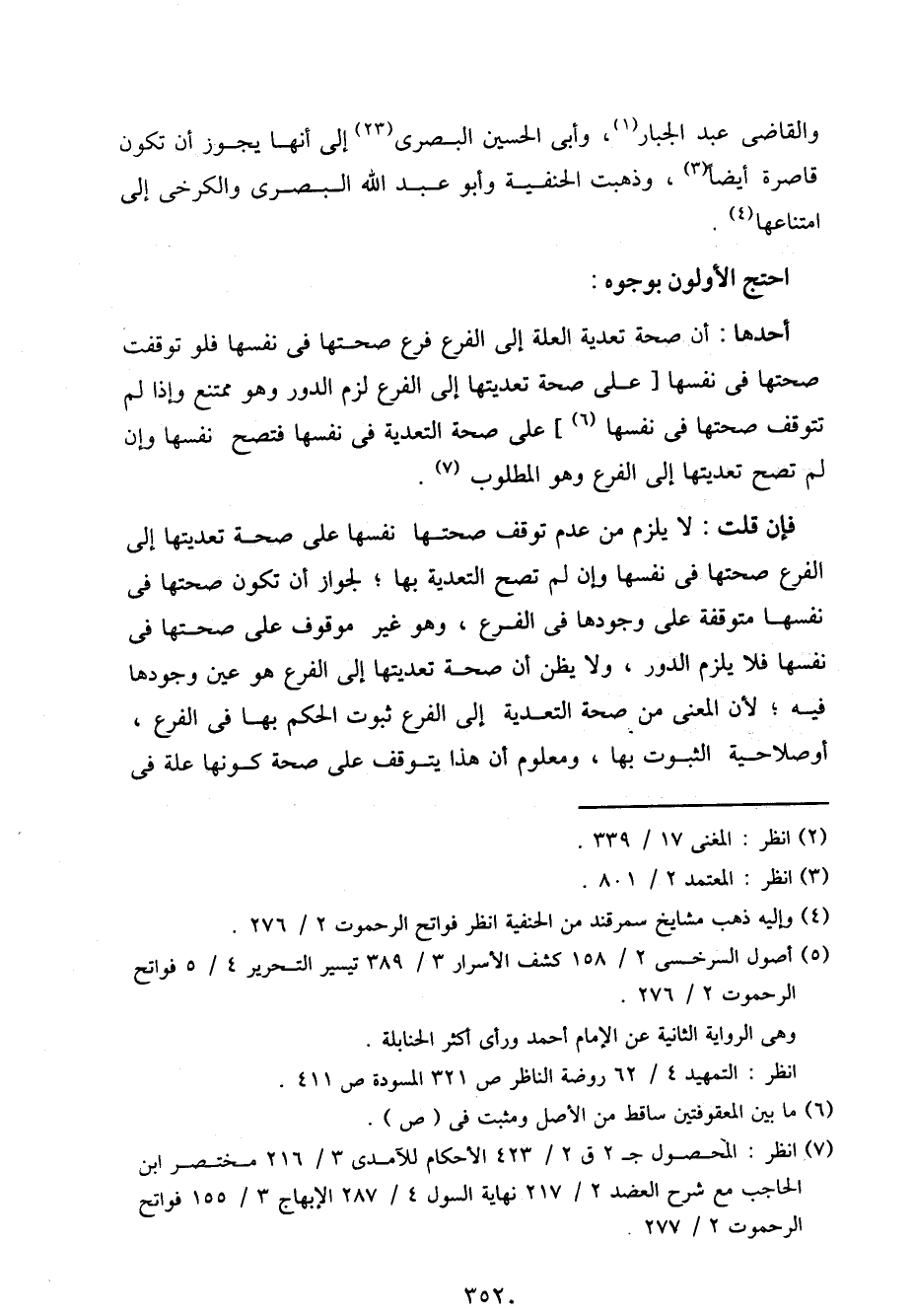 والقاضي عبد الجبار، وأبي الحسين البصري إلى أنها يجوز أن تكون قاصرة أيضا، وذهبت الحنفية وأبو عبد الله البصري والكرخي إلى امتناعها.