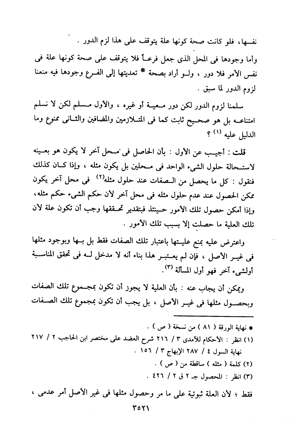 وأما وجودها في المحل الذي جعل فرعا فلا يتوقف على صحة كونها علة في نفس الأمر فلا دور، ولو أراد بصحة تعديتها إلى الفرع وجودها فيه منعنا لزوم الدور لما سبق.