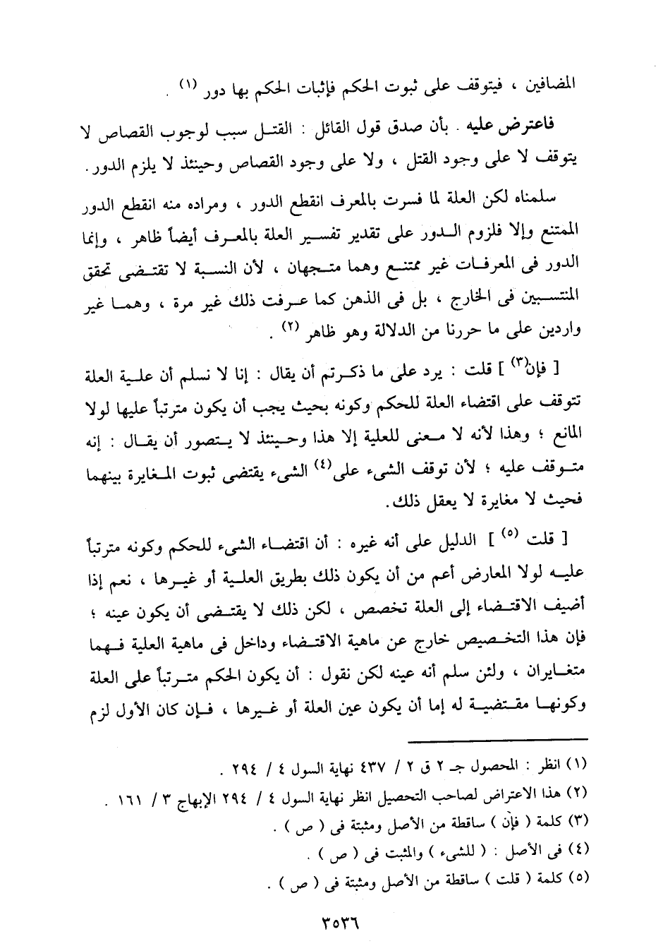فاعترض عليه. بأن صدق قول القائل: القتل سبب لوجوب القصاص لا يتوقف لا على وجود القتل، ولا على وجود القصاص وحينئذ لا يلزم الدور.
