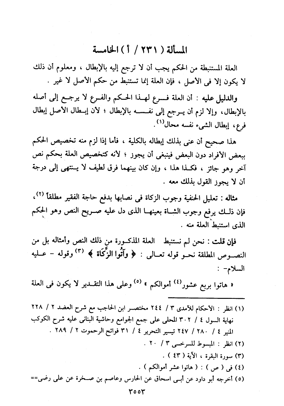 المسألة الخامسة: (231/ أ)
