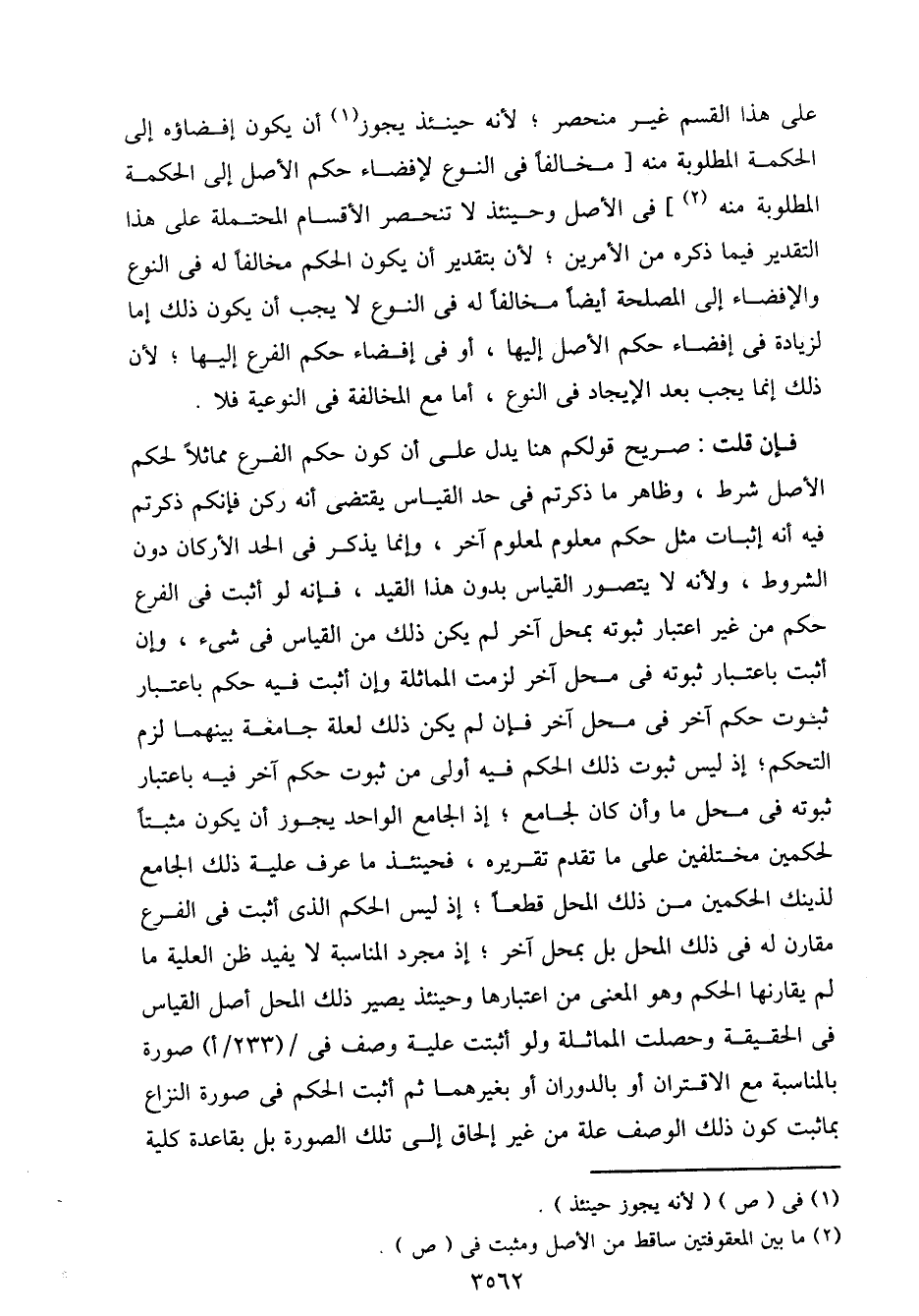 على هذا القسم غير منحصر؛ لأنه حينئذ يجوز أن يكون إفضاؤه إلى الحكمة المطلوبة منه [مخالفًا في النوع لإفضاء حكم الأصل إلى الحكمة المطلوبة منه] في الأصل وحينئذ لا تنحصر الأقسام المحتملة على هذا التقدير فيما ذكره من الأمرين؛ لأن بتقدير أن يكون الحكم مخالفًا له في النوع والإفضاء إلى المصلحة أيضًا مخالفًا له في النوع لا يجب أن يكون ذلك إما لزيادة في إفضاء حكم الأصل إليها، أو في إفضاء حكم الفرع إليها؛ لأن ذلك إنما يجب بعد الإيجاد في النوع، أما مع المخالفة في النوعية فلا.