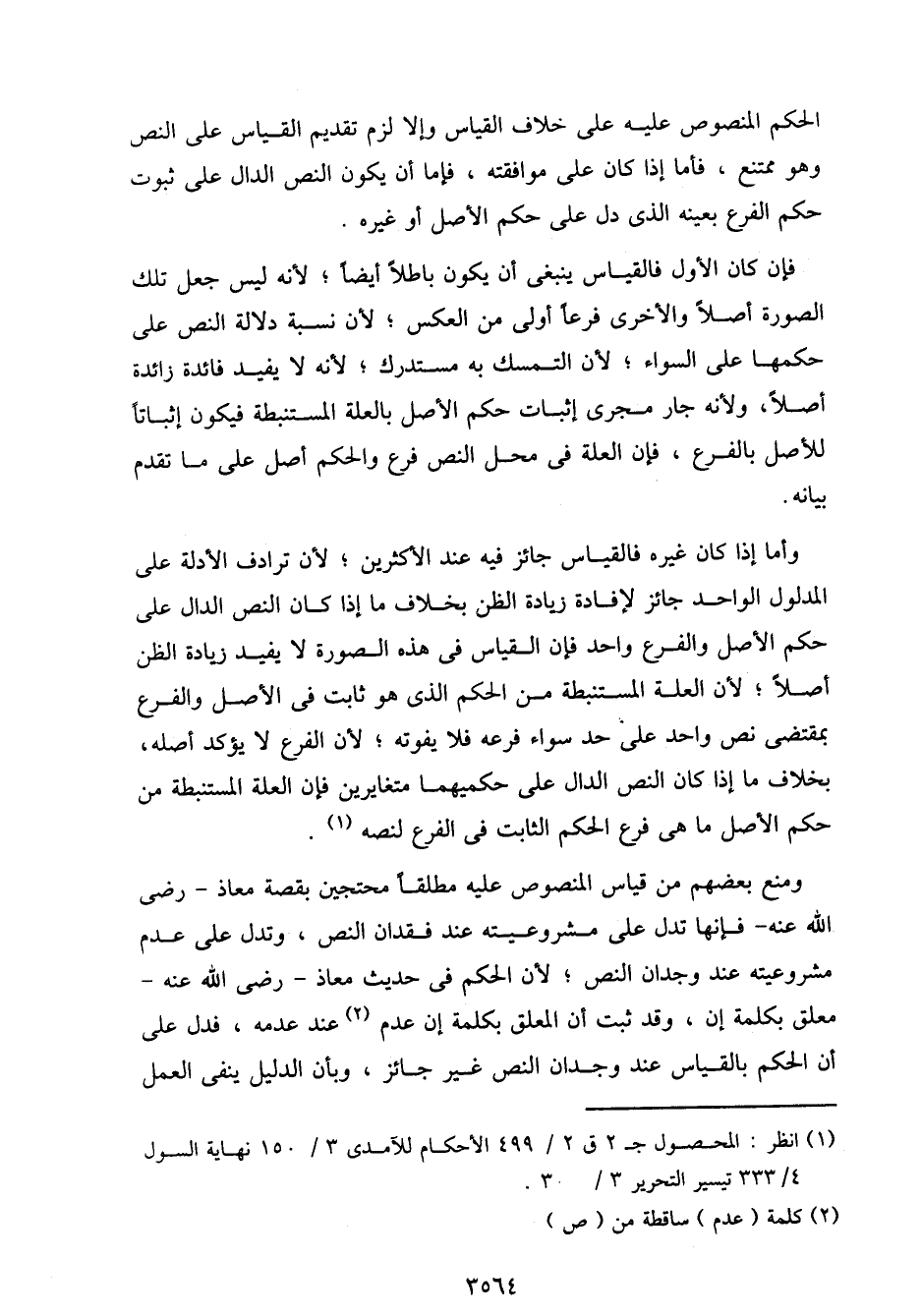 فإن كان الأول فالقياس ينبغي أن يكون باطلاً أيضًا؛ لأنه ليس جعل تلك الصورة أصلاً والأخرى فرعًا أولى من العكس؛ لأن نسبة دلالة النص على حكمها على السواء؛ لأن التمسك به مستدرك؛ لأنه لا يفيد فائدة زائدة أصلاً، ولأنه جار مجرى إثبات حكم الأصل بالعلة المستنبطة فيكون إثباتًا للأصل بالفرع، فإن العلة في محل النص فرع والحكم أصل على ما تقدم بيانه.