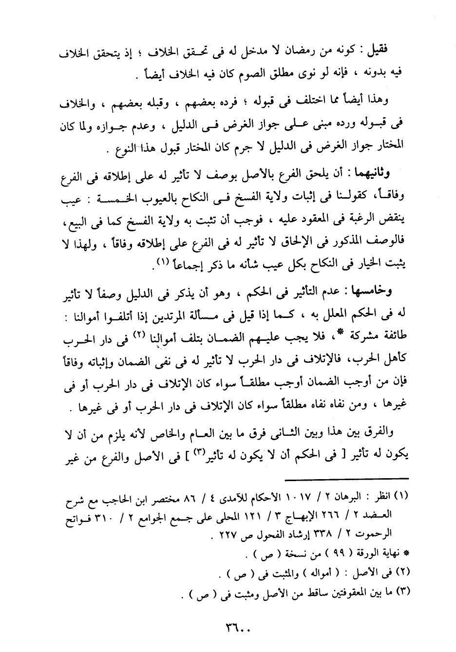 وخامسها: عدم التأثير في الحكم، وهو أن يذكر في الدليل وصفًا لا تأثير له في الحكم المعلل به، كما إذا قيل في مسألة المرتدين إذا أتلفوا أموالنا: طائفة مشركة، فلا يجب عليهم الضمان بتلف أموالنا في دار الحرب كأهل الحرب، فالإتلاف في دار الحرب لا تأثير له في نفى الضمان وإثباته وفاقًا فإن من أوجب الضمان أوجب مطلقًا سواء كان الإتلاف في دار الحرب أو في غيرها، ومن نفاه نفاه مطلقًا سواء كان الإتلاف في دار الحرب أو في غيرها.
