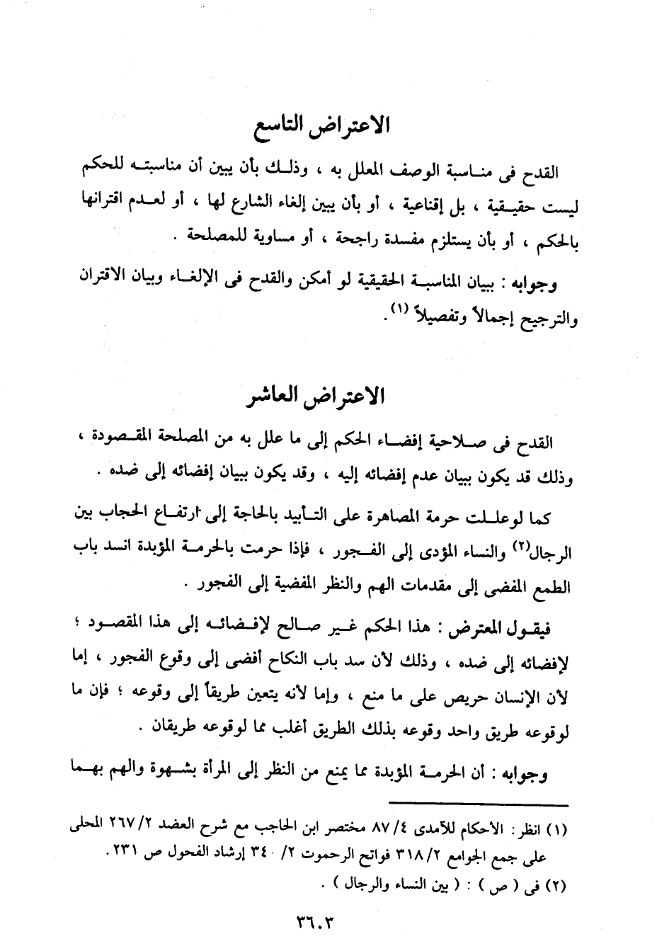 فيقول المعترض: هذا الحكم غير صالح لإفضائه إلى هذا المقصود؛ لإفضائه إلى ضده، وذلك لأن سد باب النكاح أفضى إلى وقوع الفجور، إما لأن الإنسان حريص على ما منع، وإما لأنه يتعين طريقا إلى وقوعه؟ فإن ما لوقوعه طريق واحد وقوعه بذلك الطريق أغلب مما لوقوعه طريقان.