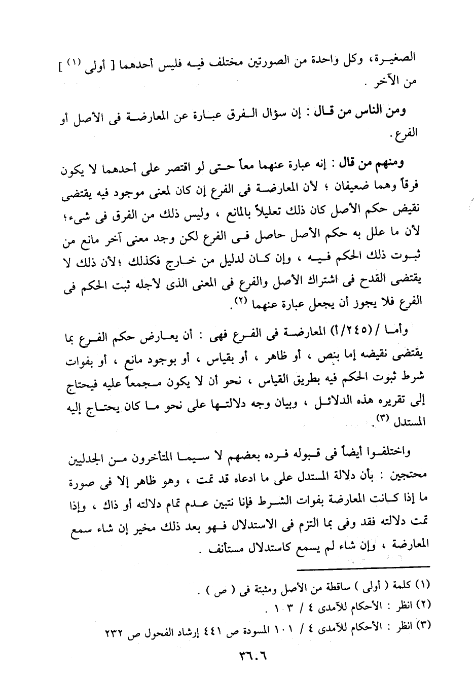 وأما/ (245/ أ) المعارضة في الفرع فهي: أن يعارض حكم الفرع بما يقتضى نقيضه إما بنص، أو ظاهر، أو بقياس، أو بوجود مانع، أو بفوات شرط ثبوت الحكم فيه بطريق القياس، نحو أن لا يكون مجمعًا عليه فيحتاج إلى تقريره هذه الدلائل، وبيان وجه دلالتها على نحو ما كان يحتاج إليه المستدل.