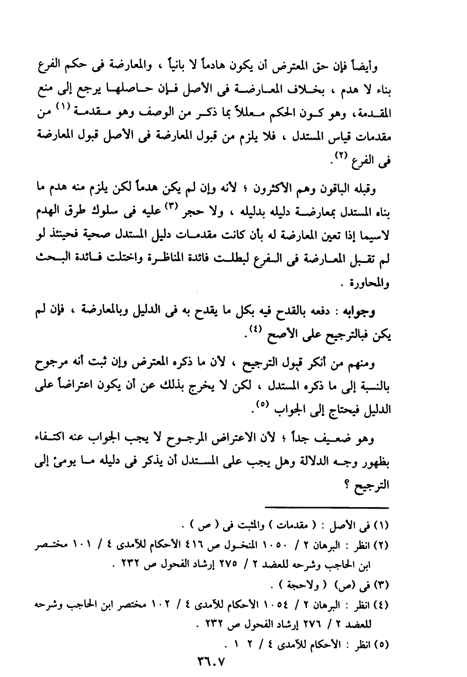 ومنهم من أنكر قبول الترجيح، لأن ما ذكره المعترض وإن ثبت أنه مرجوح بالنسبة إلى ما ذكره المستدل، لكن لا يخرج بذلك عن أن يكون اعتراضا على الدليل فيحتاج إلى الجواب.