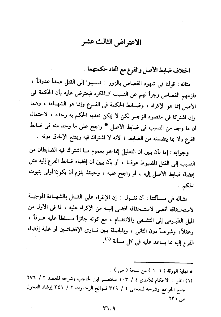وجوابه: إما بان يبين أن التعليل إنما هو بعموم ما اشتراك فيه الضابطان من التسبب إلى القتل المضبوط عرفًا، أو بأن يبين أن إفضاء ضابط الفرع إليه مثل إفضاء ضابط الأصل إليه، أو راجح عليه، وحينئذ يلزم أن يكون: أولى بثبوت الحكم.