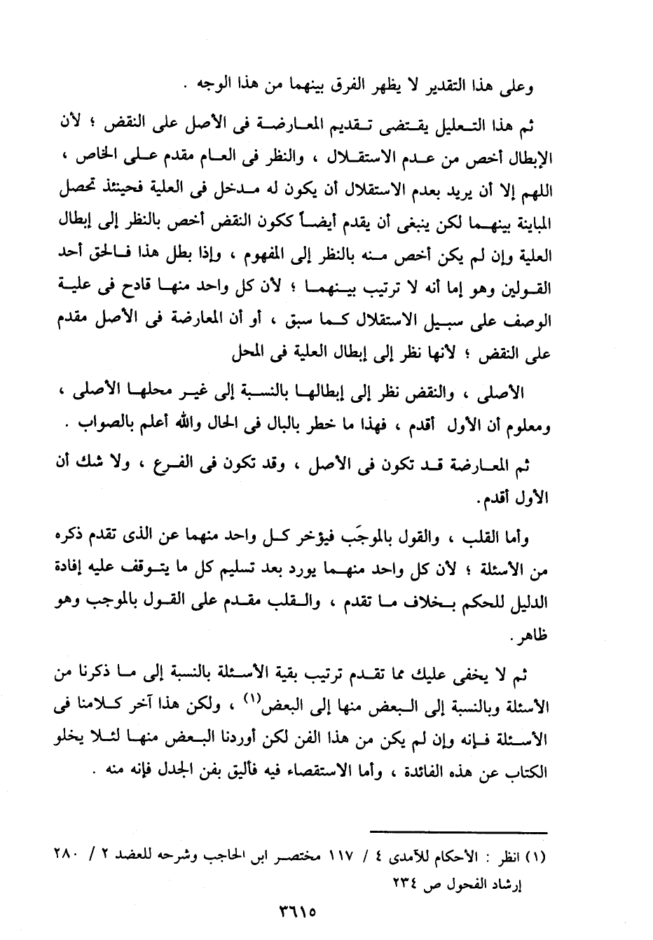 الأصلي، والنقض نظر إلى إبطالها بالنسبة إلى غير محلها الأصلي، ومعلوم أن الأول أقدم، فهذا ما خطر بالبال في الحال والله أعلم بالصواب. ثم المعارضة فد تكون في الأصل، وقد تكون في الفرع، ولا شك أن الأول أقدم.