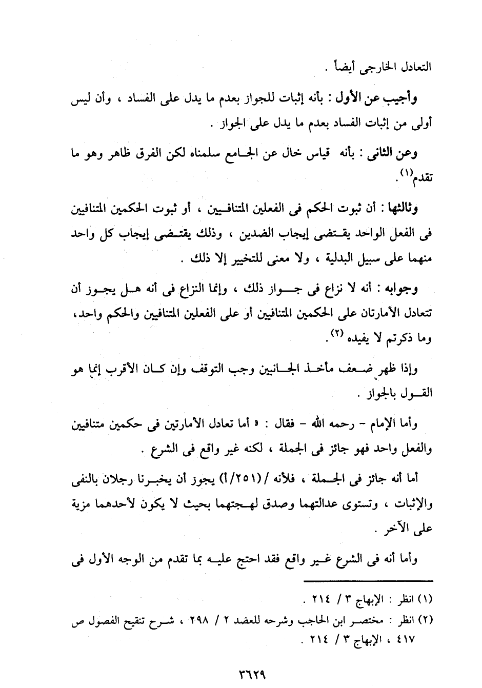 وجوابه: أنه لا نزاع في جواز ذلك، وإنما النزاع في أنه هل يجوز أن تتعادل الأمارتان على الحكمين المتنافيين أو على الفعلين المتنافيين والحكم واحد، وما ذكرتم لا يفيده.