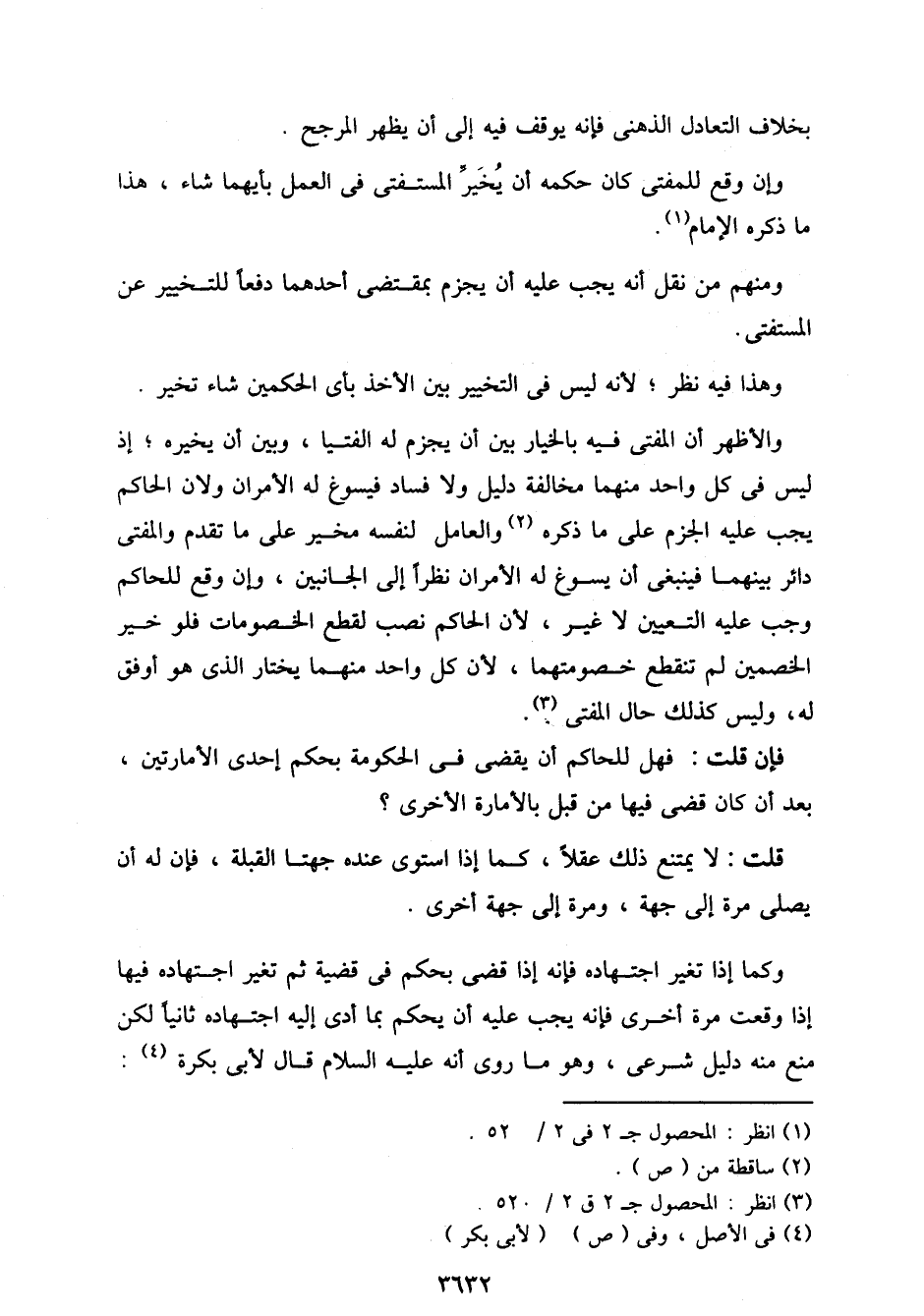والأظهر أن المفتي فيه بالخيار بين أن يجزم له الفتيا، وبين أن يخيره إذ ليس في كل واحد منهما مخالفة دليل ولا فساد فيسوغ له الأمران ولأن الحاكم يجب عليه الجزم على ما ذكره والعامل لنفسه مخير على ما تقدم والمفتي داثر بينهما فينبغي أن يسوغ له الامران نظرًا إلى الجانبين، وإن وقع للحاكم وجب عليه التعين لا غير، لأن الحاكم نصب لقطع الخصومات فلو خير الخصمين لم تنقطع خصومتهما، لأن كل واحد منهما يختار الذى هو أوفق له، وليس كذلك حال المفتي.