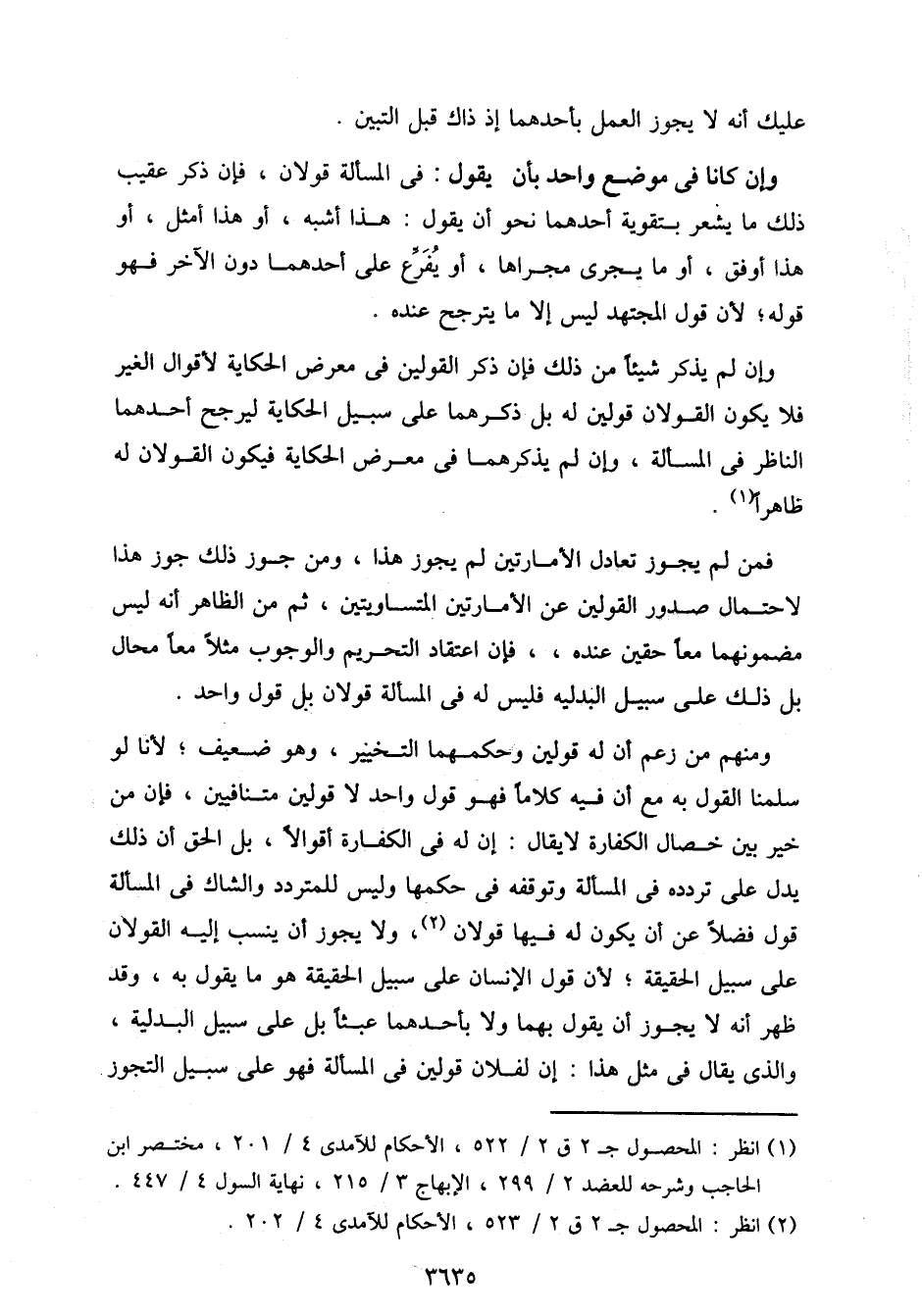 ومنهم من زعم أن له قولين وحكمهما التخيير، وهو ضعيف؛ لأنا لو سلمنا القول به مع أن ميه كلاما فهو قول واحد لا قولين متنافيين، فإن من خير بين خصال الكفارة لا يقال: إن له في الكفارة أقوالا، بل الحق أن ذلك يدل على تردده في المسالة وتوقفه في حكمها وليس للمتردد والشاك في المسالة قول فضلاً عن أن يكون له فيها قولان، ولا يجوز أن ينسب إليه القولان على سبيل الحقيقة؛ لأن قول الإنسان على سبيل الحقيقة هو ما يقول به، وقد ظهر أنه لا يجوز أن يقول بهما ولا بأحدهما عبثا بل على سبيل البدلية، والذى يقال في مثل هذا: إن لفلان قولين في المسالة فهو على سبيل التجوز