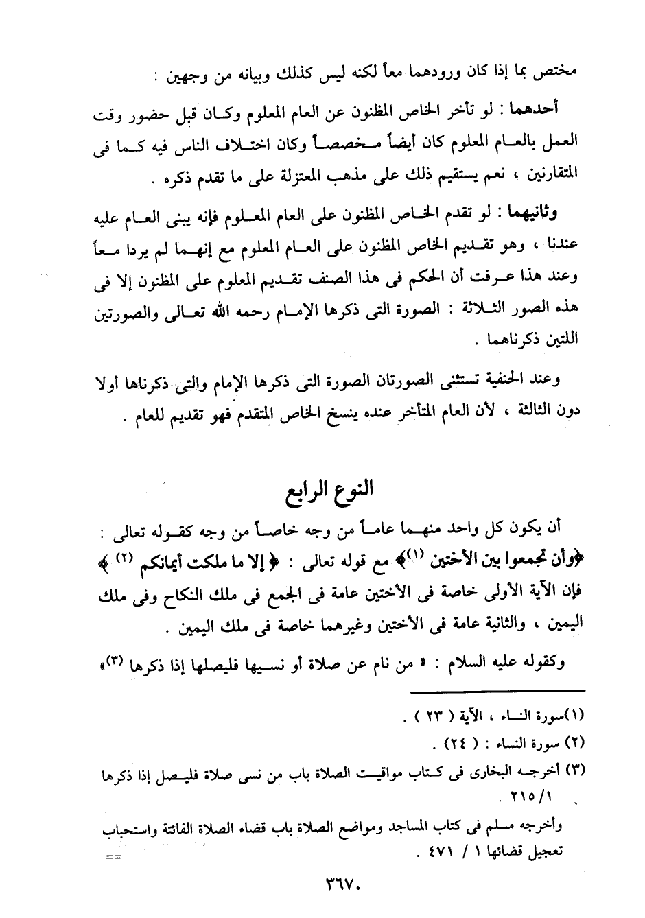 وعند الحنفية تستثنى الصورتان الصورة التي ذكرها الإمام والتي ذكرناها أولاً دون الثالثة، لأن العام المتأخر عنده ينسخ الخاص المتقدم فهو تقديم للعام.