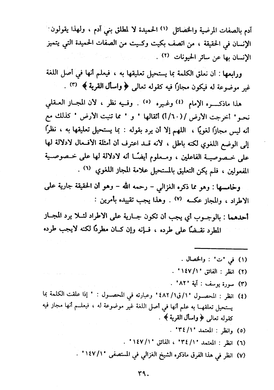 وخامسها: وهو مما ذكره الغزالي- رحمه الله- وهو أن الحقيقة جارية على الاطراد، والمجاز عكسه. وهذا يجب تقييده بأمرين: