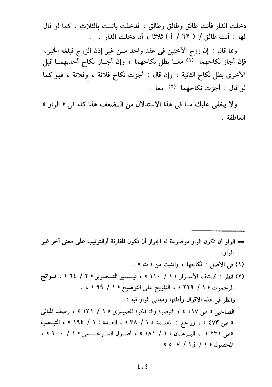 ولا يخفى عليك ما في هذا الاستدلال من الضعف هذا كله في "الواو" العاطفة.