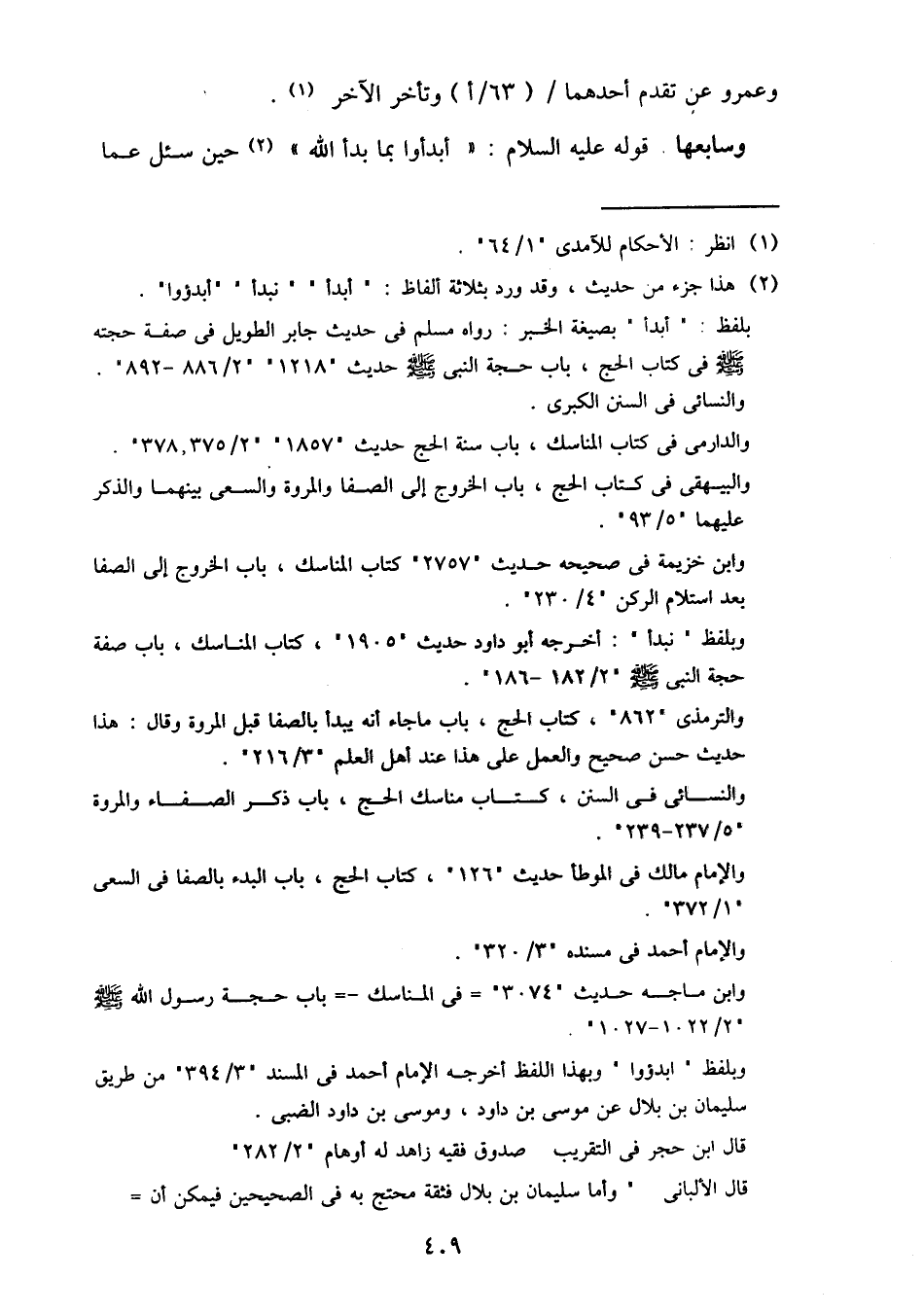 وسابعها: قوله عليه السلام:"أبدأوا بما بدأ الله" حين سئل عما