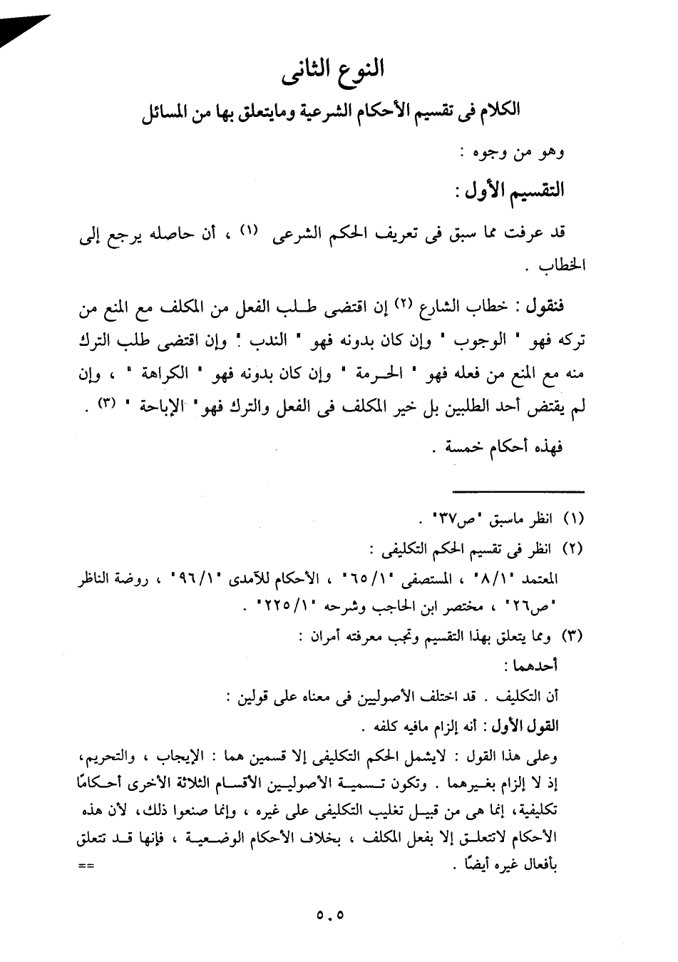 الكلام في تقسيم الأحكام الشرعية وما يتعلق بها من المسائل