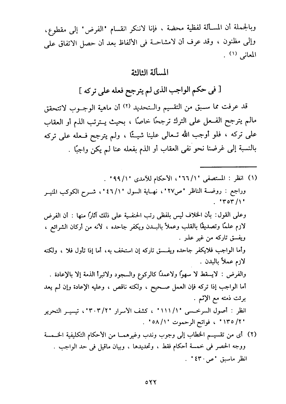 وبالجملة أن المسألة لفظية محضة، فإنا لا ننكر انقسام "الفرض" إلى مقطوع، وإلى مظنون، وقد عرف أن لا مشاحة في الألفاظ بعد أن حصل الاتفاق على المعاني.