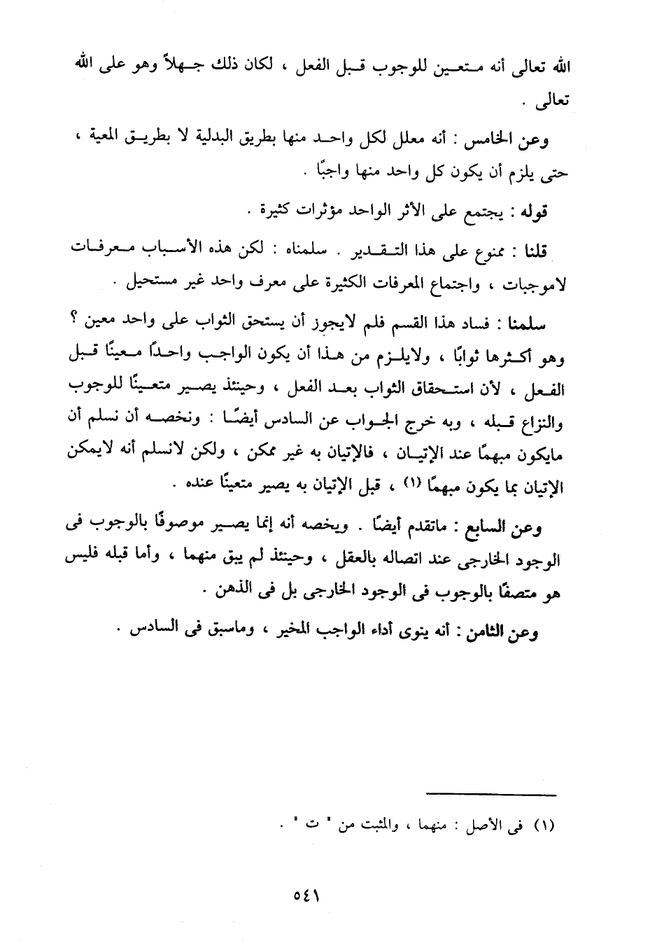 وعن السابع: ما تقدم أيضا. ويخصه أنه إنما يصير موصوفا بالوجوب في الوجود الخارجي عند اتصاله بالعقل، وحينئذ لم يبق منهما، وأما قبله فليس هو متصفا بالوجوب في الوجود الخارجي بل في الذهن.