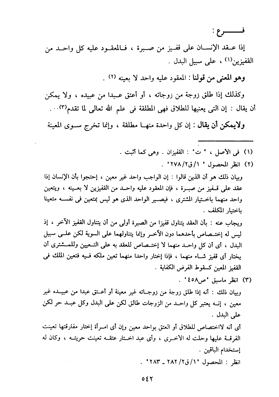 إذا عقد الإنسان على قفيز من صبرة، فالمعقود عليه كل واحد من القفيزين، على سبيل البدل.